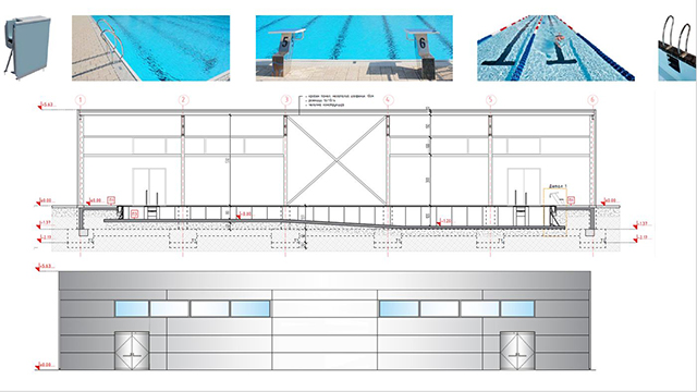 Според проектот „14 пливачки базени“ се работи за покриен базен со 25 метри должина и ширина од минимум 8,80 метри. Минималната длабочина на базенот е 0,8 м, а максималната 1,4 м. При проектирањето се применети препораките, стандардите и нормативите на светската пливачка федерација ФИНА.